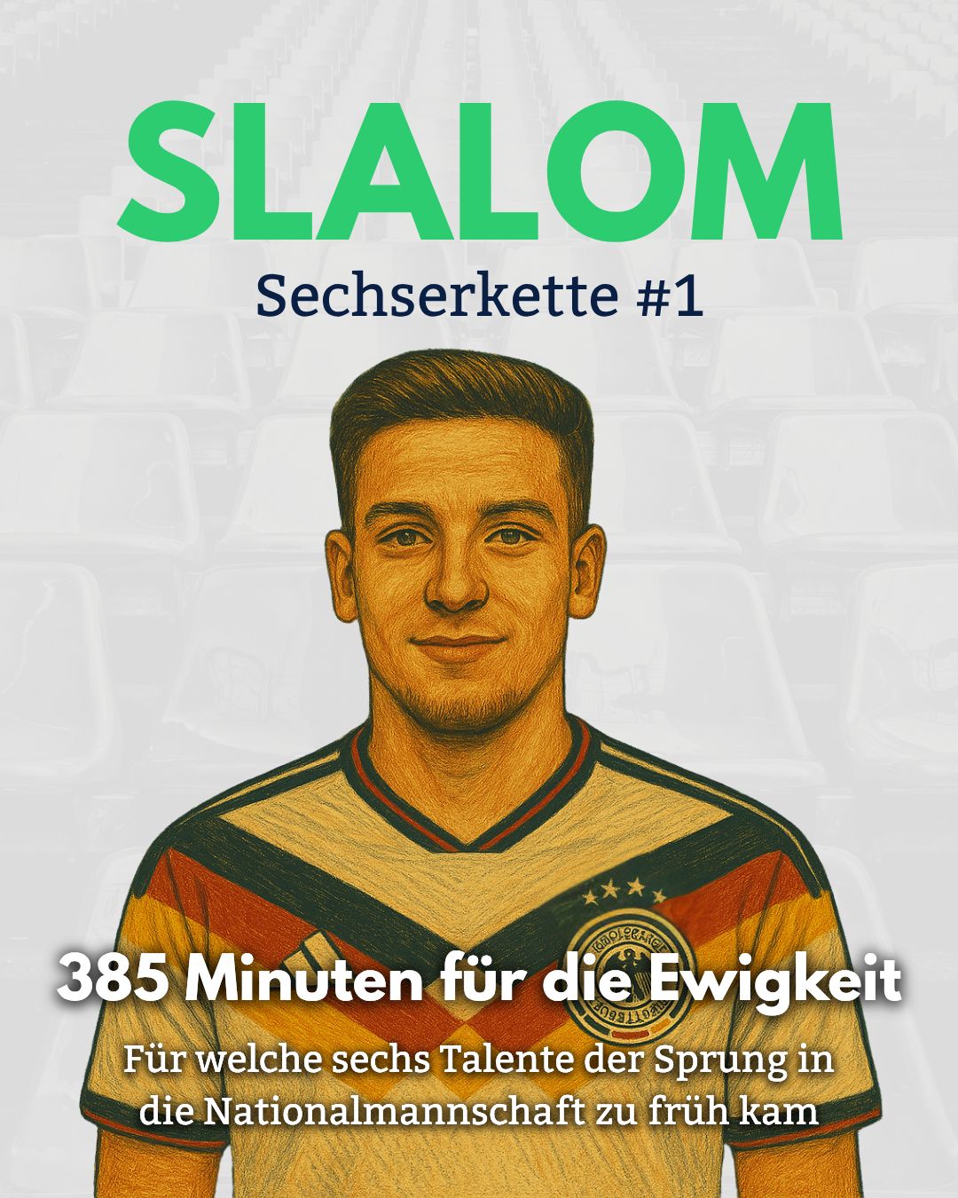 Ab jetzt wird’s persönlich, leidenschaftlich und ein bisschen streitbar: In der SLALOM-Sechserkette suchen wir sechs Spieler einer bestimmten Kategorie. Heute geht es um sechs Kicker, die unserer Ansicht nach zu früh für die Nationalmannschaft nominiert und ihrem Hype nicht gerecht wurden.